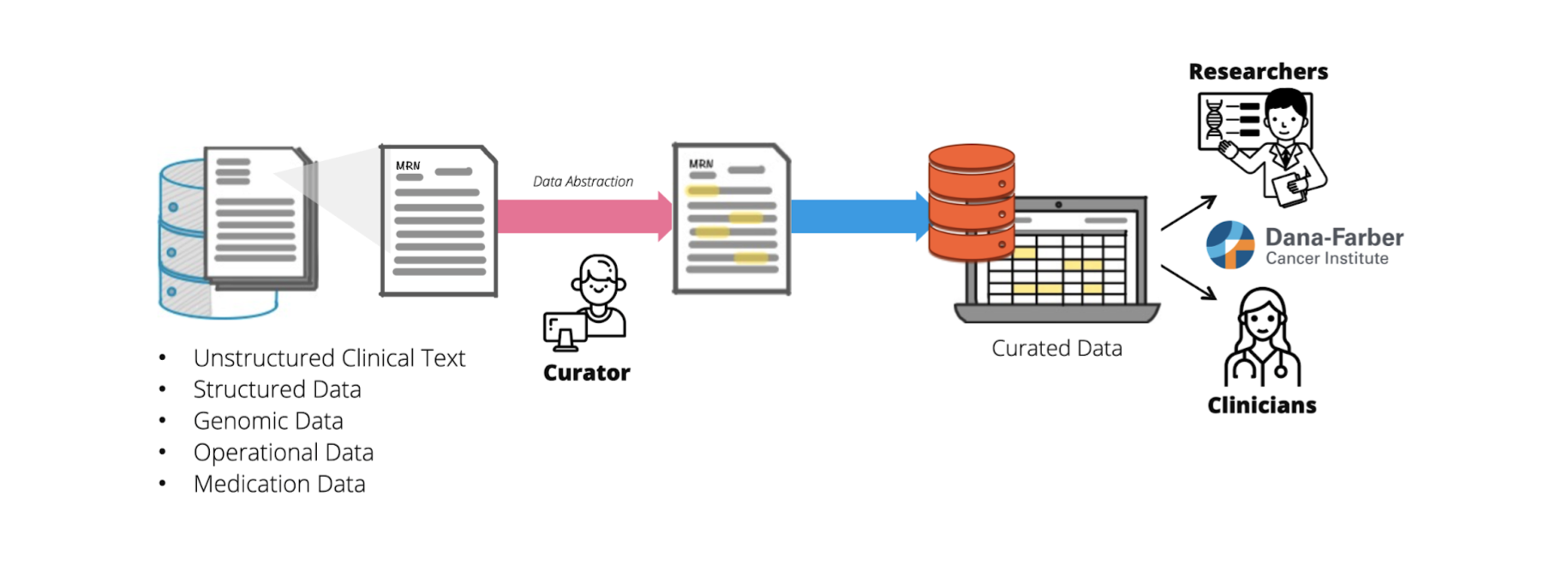 Because outcomes are often trapped in not analyzable free-text data, a lot of manual effort is required to do research efficiently at scale despite the large amount of data Dana-Farber has.