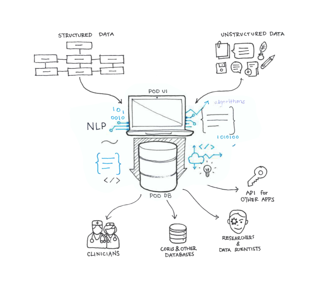 Curators extract key information from the electronic data warehouse and save it into a central database, making high-quality data accessible to both researchers and clinicians.